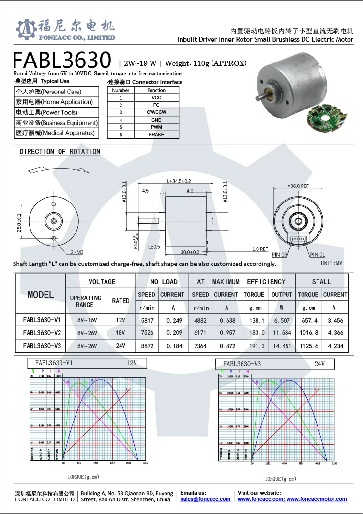 FABL3630 Φ 36 mm Small Inner Rotor Brushless DC electric motor